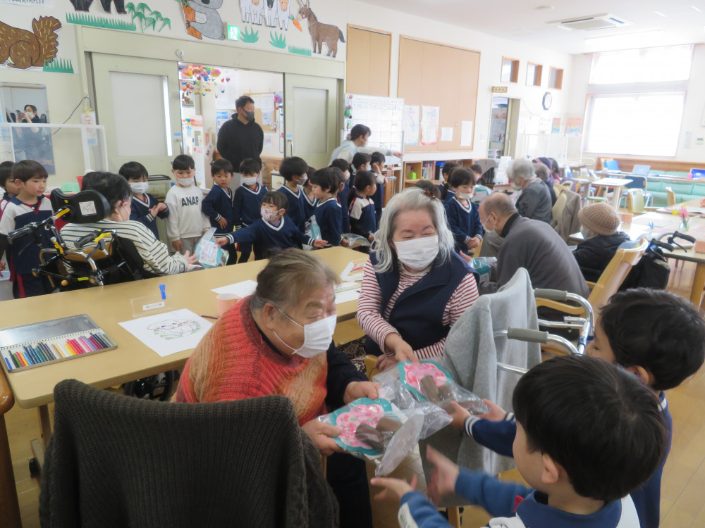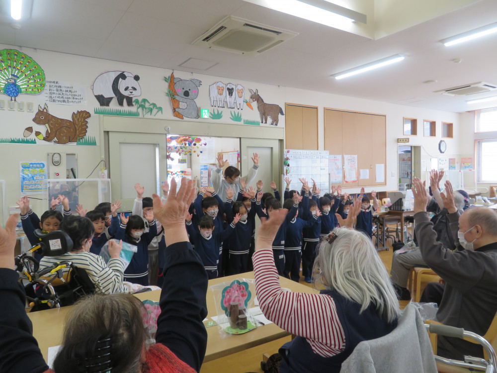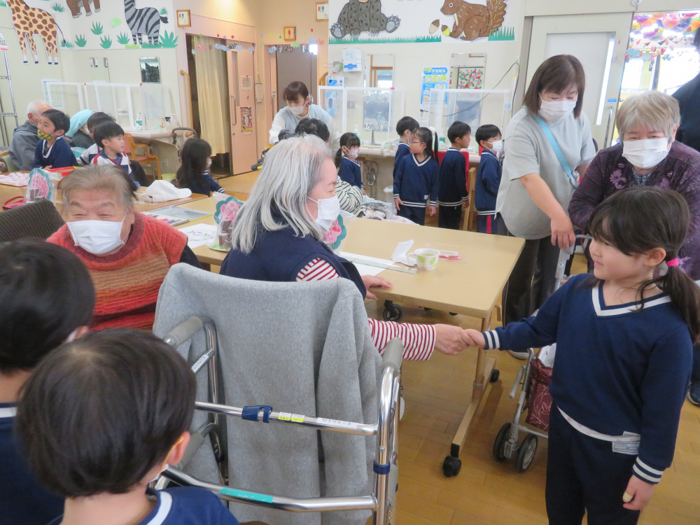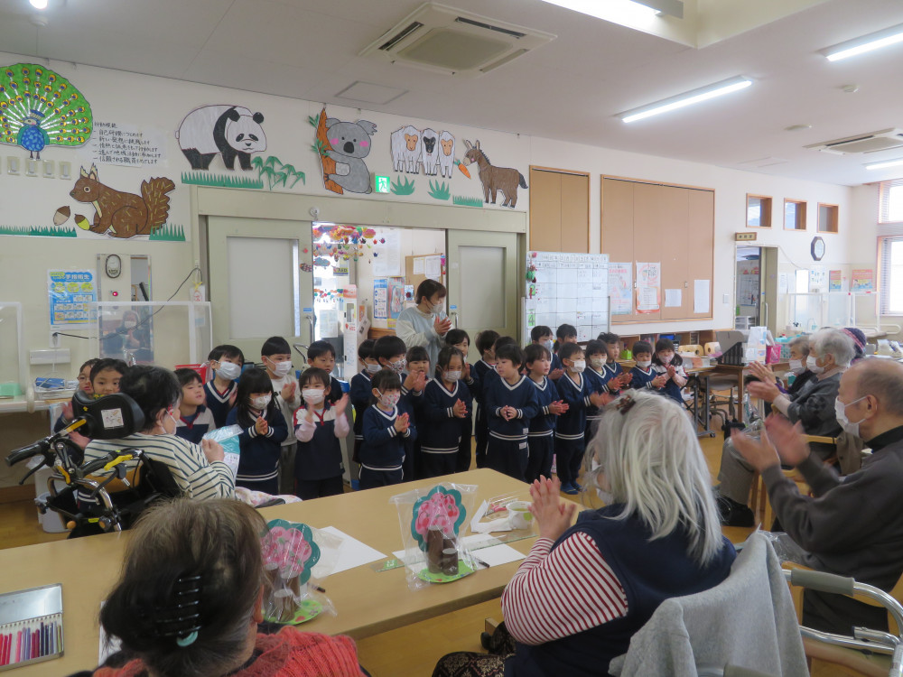 デイホームへの訪問 2026年03月19日 年中組の園児が、飯貝にある「デイサービスすこやか大内」を訪問しました。 手作りのえんぴつ立てとちゅうりっぷの歌♪のプレゼント🌸 そして一人ひとりのおじいちゃんおばあちゃんと握手をして帰ってきました。 とても喜んでくれました。子どもたちもうれしそうでした。 すこやか大内のみなさん、ありがとうございました☆彡